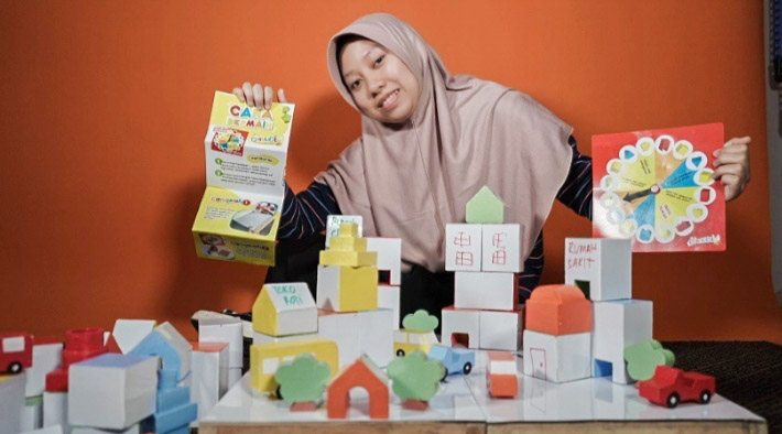 Surabaya | klikku.net – Untuk mengasah sensor motorik halus sesuai perkembangan psikologis anak usia 3-6 tahun. Mahasiswa S1 Desain Produk Universitas Dinamika, Rizka Aulia Khoirunnisa menciptakan mainan balok multiplayer yang diberi nama Creaticity.