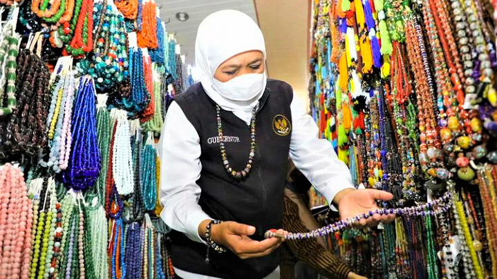 Menurut Khofifah, selama ini desa itu terkenal sebagai desa penghasil manik-manik berbahan dasar limbah beling. Yang tidak hanya diminati pasar domestik. Namunjuga telah menembus pasar di negara-negara Benua Asia, Afrika, dan Eropa.