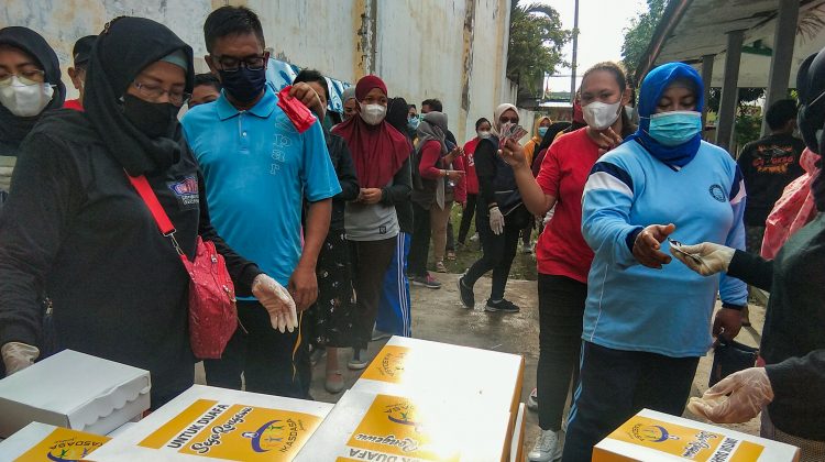 Kegiatan ini digelar di Kelurahan Beringin, Kecamatan Sambikerep, Surabaya, dengan membagikan 500 nasi kotak siap santap, Minggu (20/2/2022).