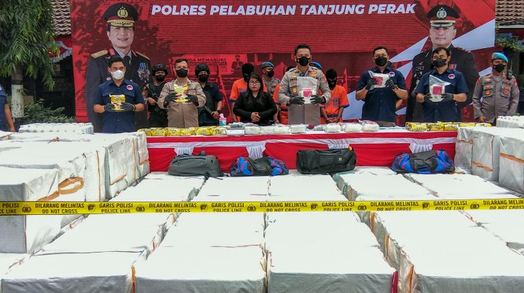 Polres Tanjung Perak Amankan 36 Kg Sabu dan 11,3 Juta Butir Pil Koplo sebagai Kado HUT RI ke 77