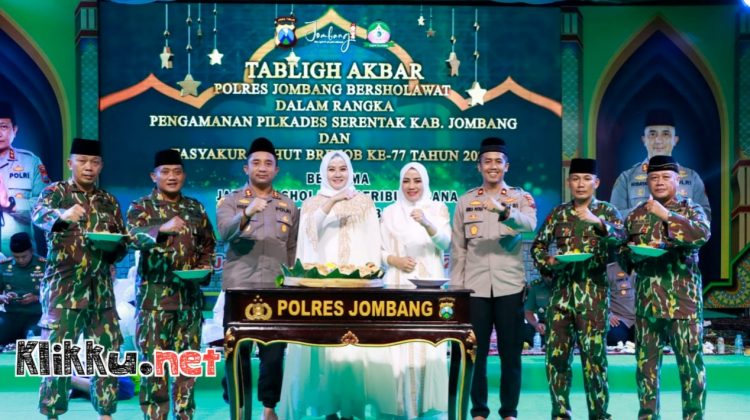 Tabligh akbar Polres Jombang bersholawat dalam rangka pengamanan pilkades serentak kabupaten Jombang dan tasyakuran HUT Korps Brimob ke 77 tahun 2022 itu bersama jam’iyah Sholawat Seribu rebana Kabupaten Jombang.