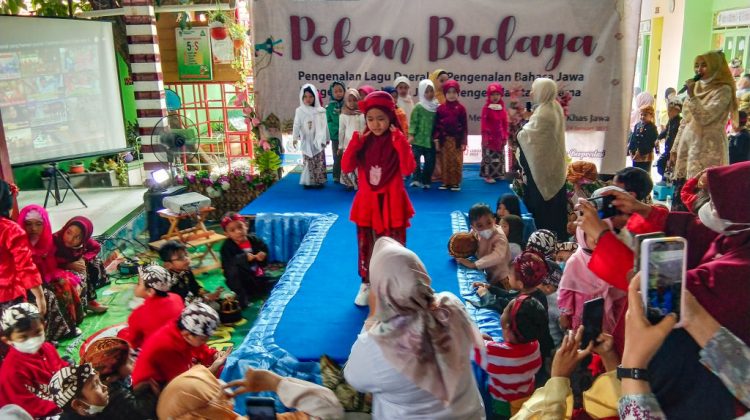 Surabaya | klikku.net – Guna mengenalkan budaya Jawa Timuran pada siswanya, KB TK Al Falah gelar kegiatan Pekan Budaya. Selama 3 hari, Selasa (24/1) hingga Kamis (26/1), seluruh siswa diajak mengenal pakaian daerah, kesenian tradisional, bahasa Jawa, serta dolanan anak.