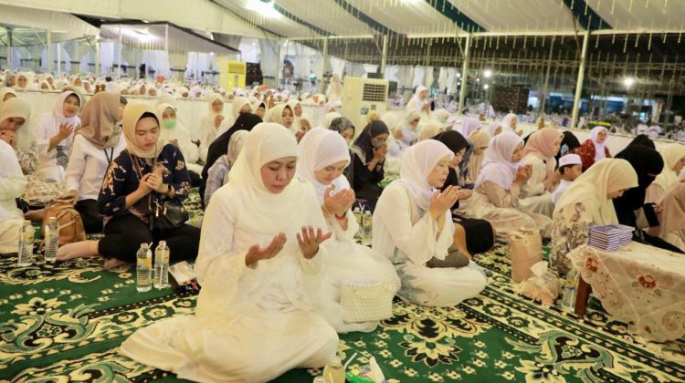 Bersama puluhan ribu jemaah dari penjuru tanah air dan mancanegara, Gubernur Khofifah terlihat khusyuk memanjatkan doa, melantukan dzikir, dan membangkitkan spiritualitas global antar umat Islam dunia, yang telah dibangun Mursyid Akbar Al Khidmah.