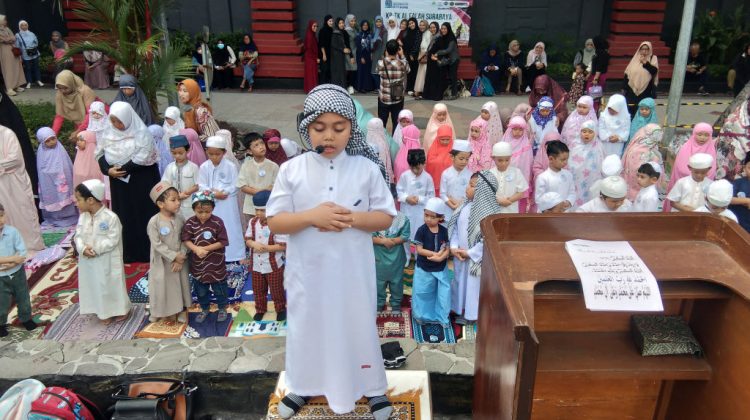 Surabaya | klikku.net – Menutup rangkaian program Ramadan Ceria 2024, KB TK Al Falah Surabaya mengajak seluruh siswa-siswinya untuk praktek sholat Idul Fitri di Taman Bungkul Surabaya, Rabu (3/4).