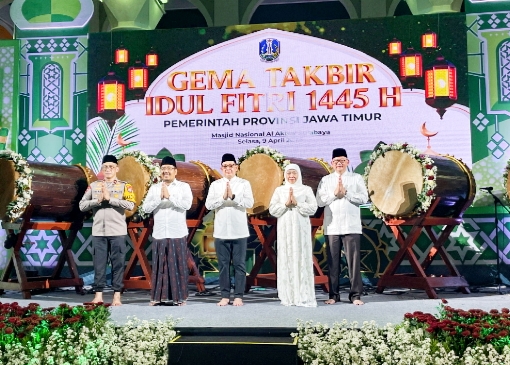Surabaya | klikku.net – Menyambut hari kemenangan, Pemerintah Provinsi Jawa Timur menggelar Gema Takbir Idul Fitri 1445 Hijriah di Masjid Nasional Al Akbar Surabaya, Selasa (9/4/2024) malam. Kegiatan dihadiri Penjabat (Pj) Gubernur Jawa Timur Adhy Karyono.