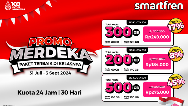 Pelanggan bisa mendapatkan keuntungan terbaik lewat Promo Merdeka khusus paket Smartfren Kuota di sepanjang Agustus 2024.