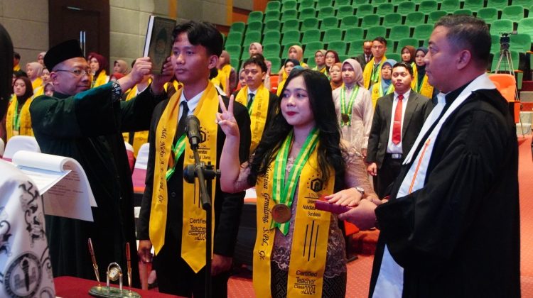 Dengan pengambilan sumpah ini, ratusan calon guru tersebut diharapkan mampu menjadi tenaga pendidik profesional yang tidak hanya kompeten secara akademik, tetapi juga berjiwa pengasuh, pembimbing, sekaligus teladan bagi peserta didik di masa depan. @Man