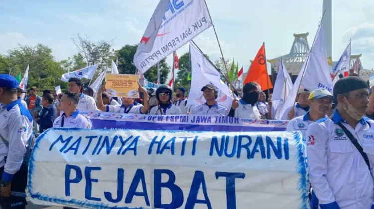 “Hari ini buruh di seluruh Indonesia bergerak. Untuk Jawa Timur, kami memilih titik di depan kantor gubernur,” katanya di sela-sela aksi.