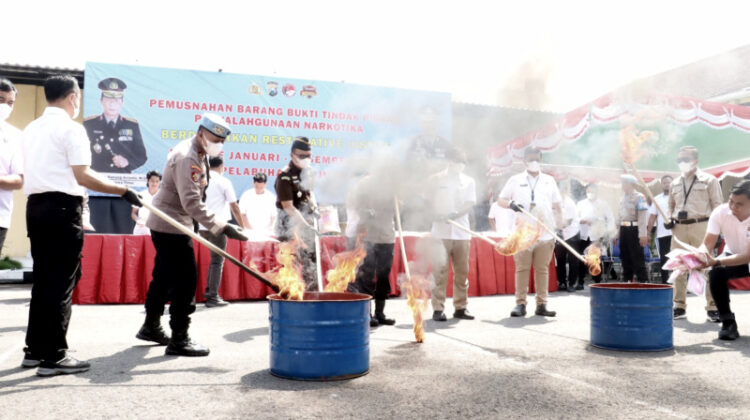 Barang bukti yang dimusnahkan meliputi sabu seberat 1.034 gram, ganja 1.038 gram, 8 butir pil ekstasi serta serbuk ekstasi seberat 4,01 gram. Selain itu turut dimusnahkan 200 pipet kaca, 85 alat hisap (bong), dan berbagai perlengkapan pendukung tindak pidana narkotika.