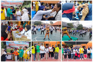 Ratusan warga hadir sejak pagi. Kegiatan dibuka dengan senam bersama, dilanjutkan pembagian 150 boks nasi siap santap, layanan pemeriksaan kesehatan gratis, santunan anak yatim dan dhuafa, serta penyerahan mushaf Al-Qur’an untuk masjid setempat.