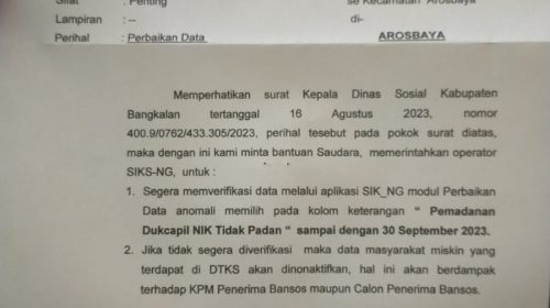 Bangkalan | klikku.net— Bertujuan agar KPM yang tercatat dalam aplikasi SIK_NG bisa terus aktiv maka Camat…